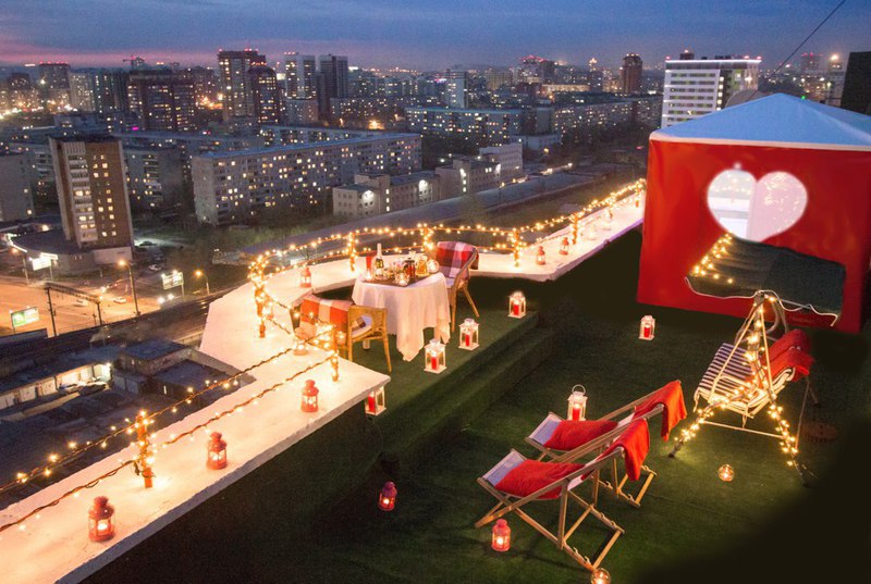 Крыша высотки, на которой проводится свидание, выбрана так, что с нее видна Обь и практически весь Новосибирск. Вместе с любимым человеком вы увидите город с высоты птичьего полета и поучаствуете в профессиональной фотосессии. Вам не будет холодно: в нашем уютном шатре тепло в любую погоду. К вашим услугам уютные диванчики и теплые пледы, различные напитки, фрукты и сладости. Этот романтический вечер вы точно запомните надолго! Мы организуем свидания уже больше трех лет, поэтому учитываем каждую мелочь. Просто позвоните и забронируйте удобное для вас время!